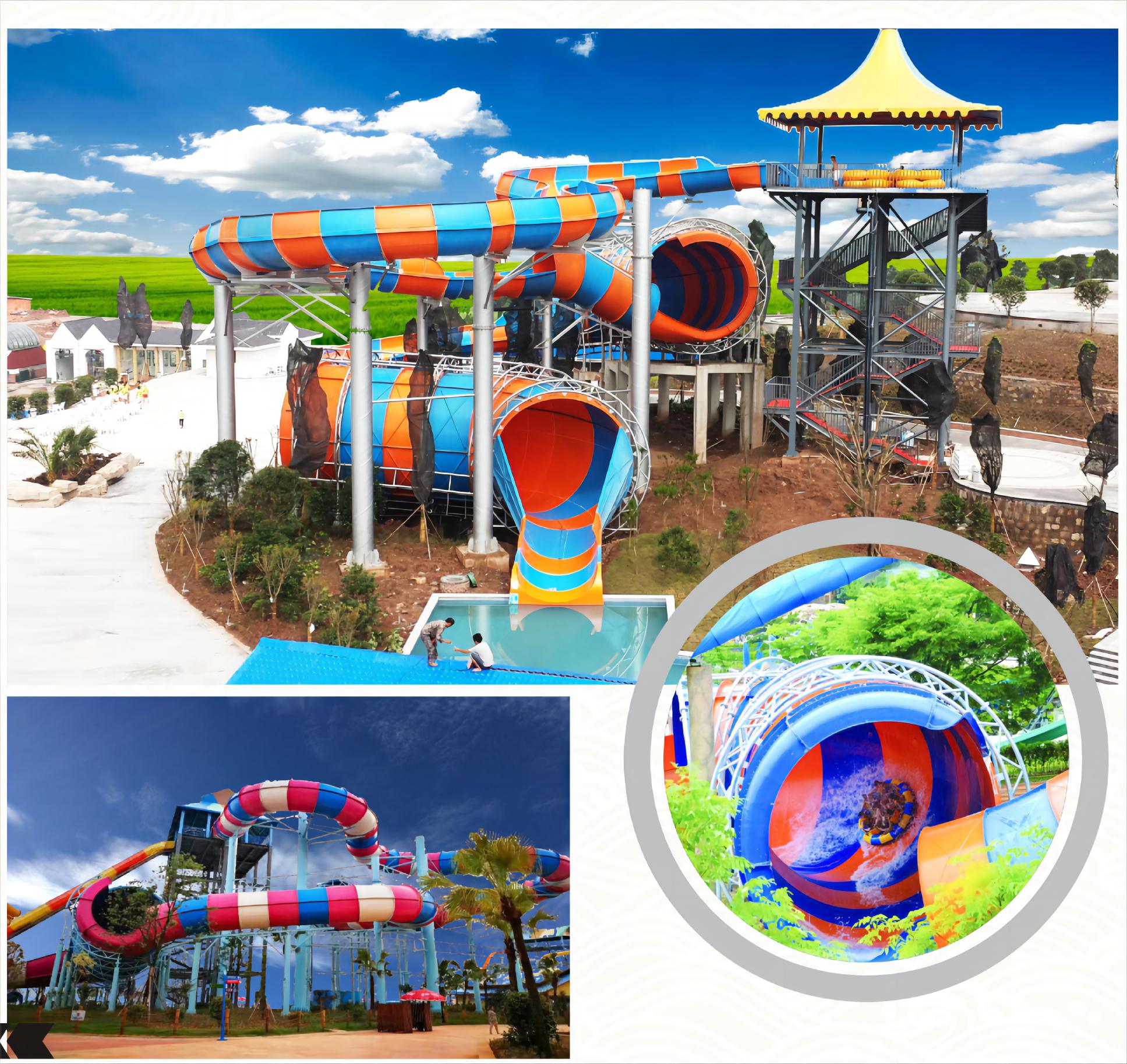 大回環滑梯的特點在于其高度和坡度。通常,滑梯的起點位于16米以上的高處,坡度*陡,游客從高處滑下,可以體驗到強烈的重力感和速度感。在滑行的過程中,游客身體如同坐過山車般沿著幾近垂直的滑管高速滑行,這種急速下墜的感覺讓人心跳加速,非常刺激。